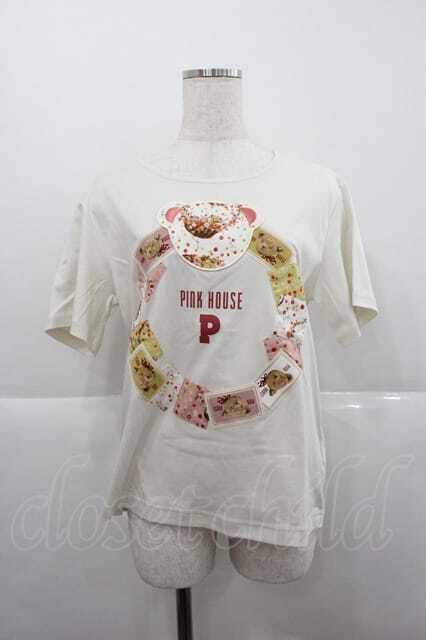 PINK HOUSE / Flower Picnicプリントアップリケカットソー アイボリー I-25-12-09-005-LO-TS-SA-ZT219