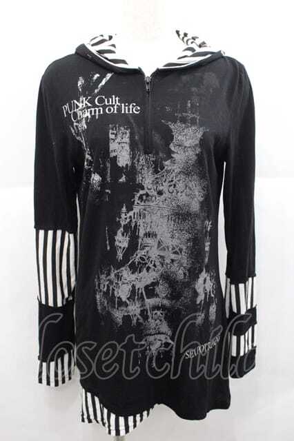 SEX POT ReVeNGe / シャンデリアプリントパーカー 黒Xグレー I-25-12-09-035-SP-TO-SA-ZI