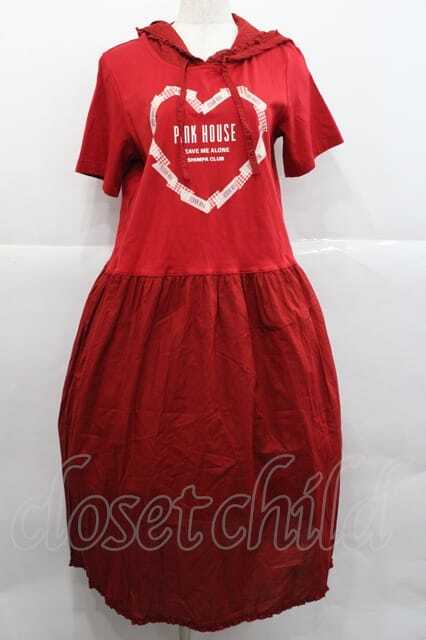 PINK HOUSE / ハートプリントフードワンピース レッド I-25-12-09-066-LO-OP-SA-ZI
