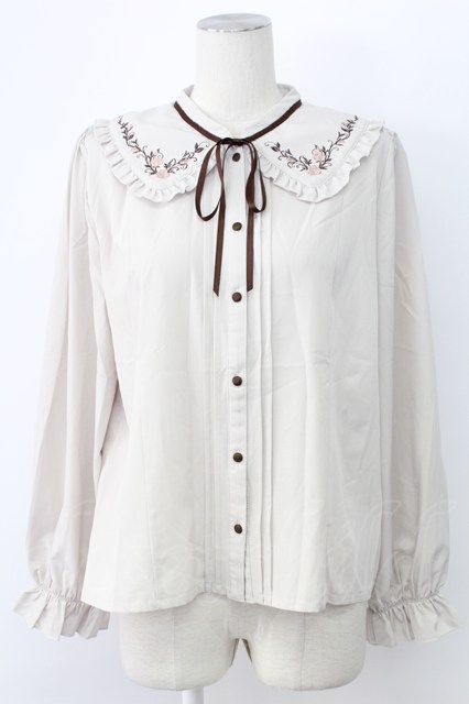 axes femme / ブーケ刺繍フリル襟ブラウス L ベージュ T-25-12-11-012-AX-BL-SA-ZI