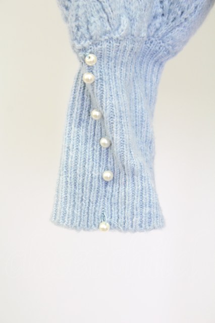axes femme / 透かし編みふわふわニットカーディガン サックス T-25-12-11-030-AX-TO-SA-ZT [戻る]