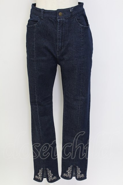 axes femme / 刺繍スリットフィットデニム L インディゴ T-25-12-11-053-AX-PA-SA-ZI