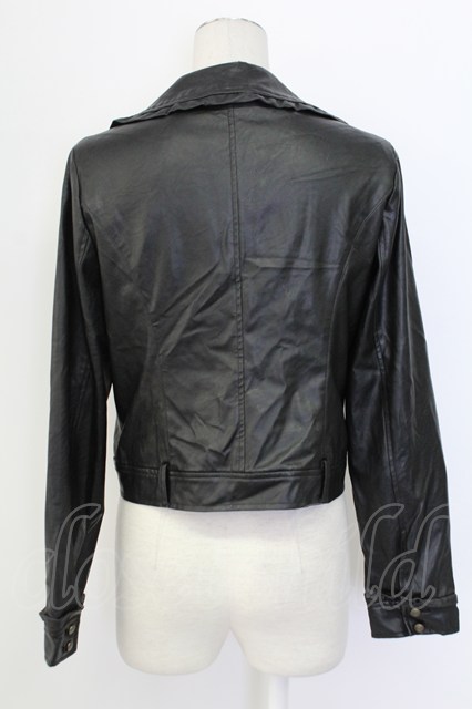 axes femme / エコレザーフリルブルゾン 黒 T-25-12-11-041-AX-JA-SA-ZI