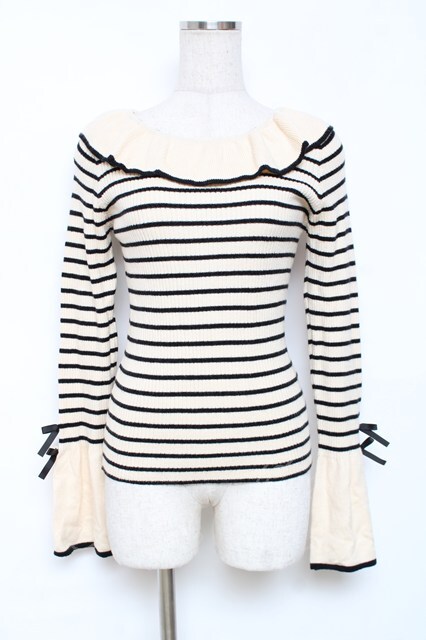 axes femme / 襟デザインボーダーニット 生成り Y-25-12-11-014-AX-TO-SZ-ZY