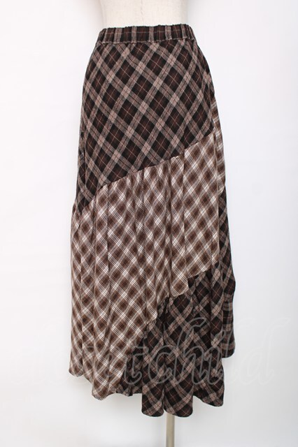 axes femme / チェック切替ロングスカート M 茶 Y-25-12-11-089-AX-SK-SZ-ZY