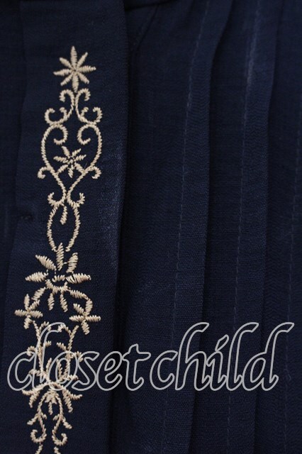 axes femme / 袖刺繍Aラインシャツワンピース ネイビー O-25-12-13-071-AX-OP-IG-ZT0105V