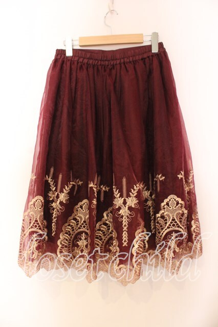 axes femme / 刺繍ロングスカート ワイン O-25-12-13-076-AX-SK-IG-ZT522