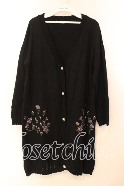 axes femme / バラ刺繍ロングニットカーデ クロ O-25-12-13-090-AX-TO-IG-OS [戻る]