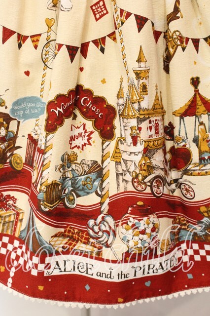 ALICE and the PIRATES / アリスのワンダーカーチェイス柄スカート アイボリー O-25-12-13-012-PA-SK-OW-OS