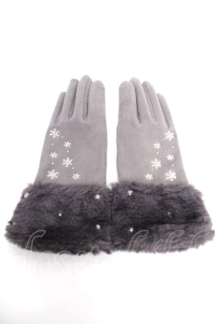 axes femme / 雪の結晶柄刺繍手袋 グレー Y-25-12-13-001-AX-ZA-SZ-ZY