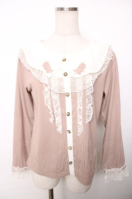 axes femme / レースフリル重ね着風リブPO M ベージュ Y-25-12-13-008-AX-TO-SZ-ZI