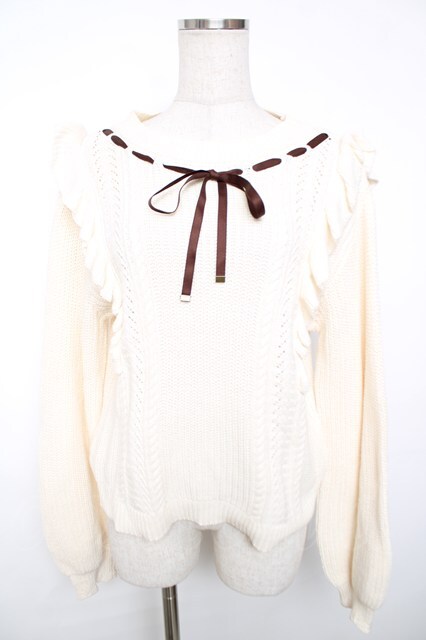 axes femme / 肩フリルニット F 生成り Y-25-12-13-011-AX-TO-SZ-ZY