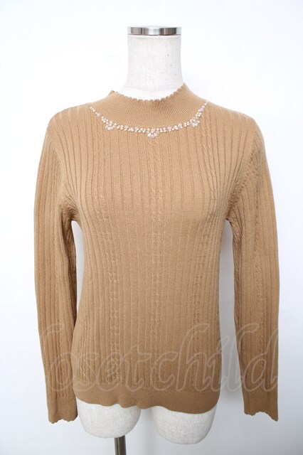 axes femme / ビジューモックネックニット M 茶 Y-25-12-13-021-AX-TO-SZ-ZI