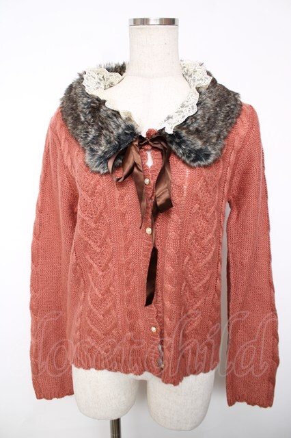 axes femme / ファー襟付きケーブルニットカーディガン M アワピンク Y-25-12-13-060-AX-TO-SZ-ZI