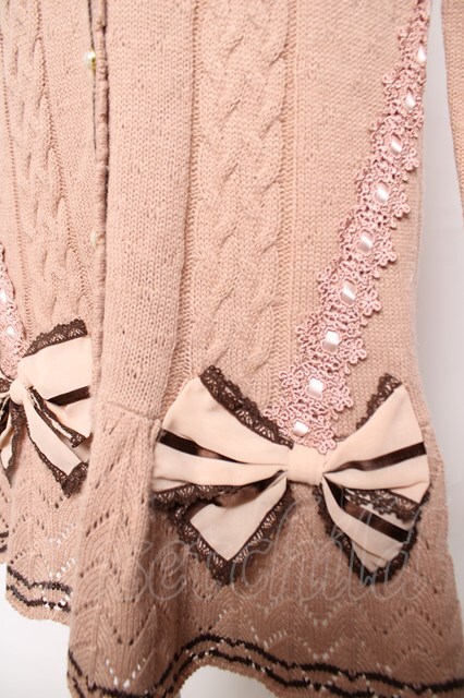 axes femme / ライン入りリボン付カーデ M アワピンク Y-25-12-13-066-AX-TO-SZ-ZS