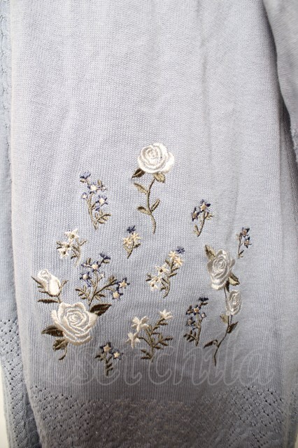 axes femme / バラ刺繍ロングニットカーデ M サックス Y-25-12-13-067-AX-TO-SZ-ZS