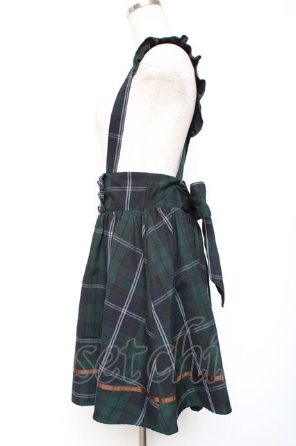 Amavel / サスペンダーチェックスカート M グリーン Y-25-12-13-108-CA-SK-SZ-ZY
