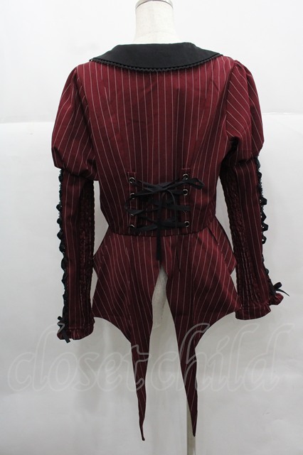 Chalmiere / ストライプレースアップジャケット M ワイン I-25-12-13-056-LO-JA-SA-ZI