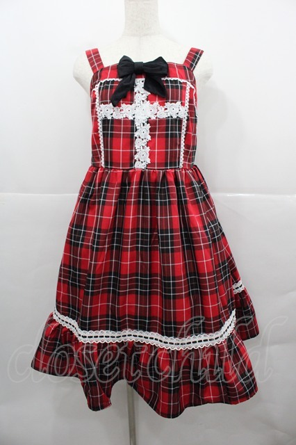 Eri Aino's collaboration / アカCHKリボンレースジャンパースカート L 赤チェック I-25-12-13-072-LO-OP-SA-ZI [戻る]