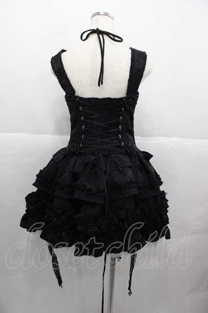 HORY HITOMI(海外ロリータブランド) / 薔薇モチーフジャンパースカートセット 黒 I-25-12-13-108-LO-OP-SA-ZI