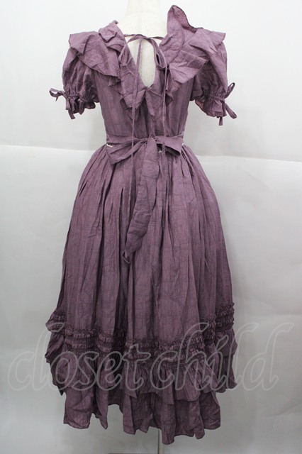 BITTERSWEET(海外ロリータブランド) / ウエストパール半袖ワンピース S パープルX白 I-25-12-13-109-LO-OP-SA-ZI