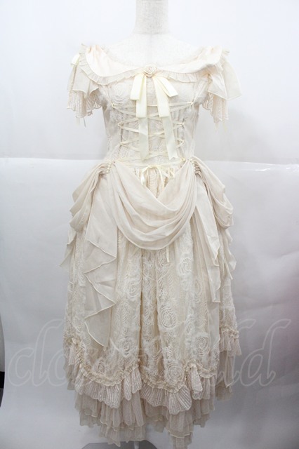Alice Girl(海外ロリータブランド) / 薔薇リボン刺繍レース半袖ワンピースセット S 生成り I-25-12-13-120-LO-TO-SA-ZI