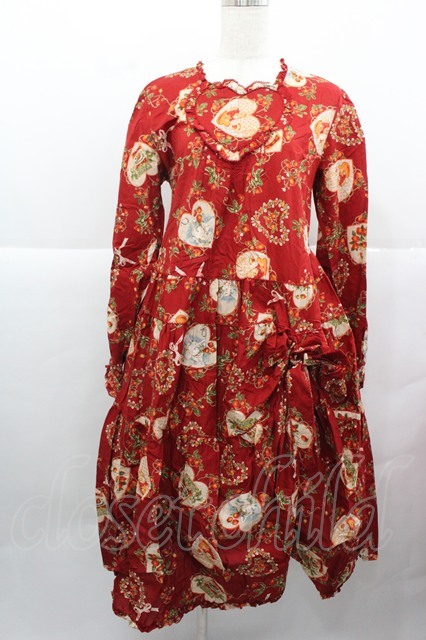 PINK HOUSE / Rambling Heartsプリントミディワンピース 赤 I-25-12-13-124-LO-OP-SA-ZI