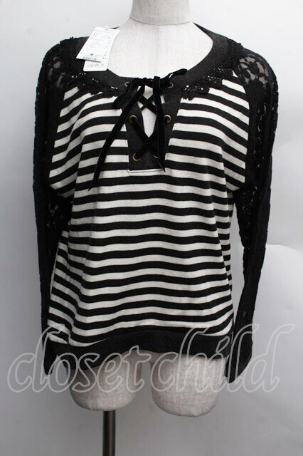 axes femme / 異素材組み合わせボーダープルオーバー 黒 S-25-12-13-025-AX-TO-HR-ZS