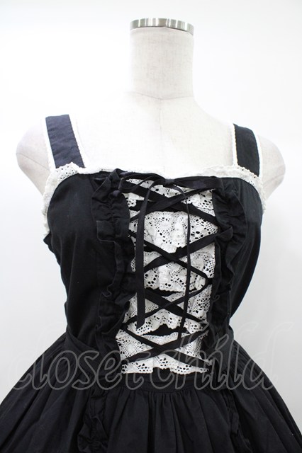 Angelic Pretty / レースアップジャンパースカート Free ブラック H-25-12-21-1034-AP-OP-NS-ZH