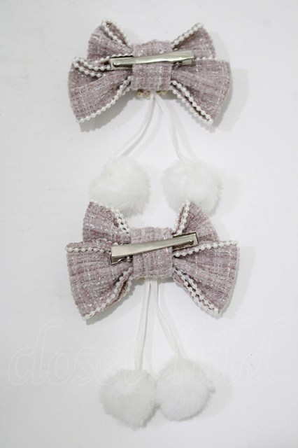NOEMIE / ツイードリボンぽんぽんツインテールクリップ ピンク H-25-12-20-068-LO-AC-NS-ZH
