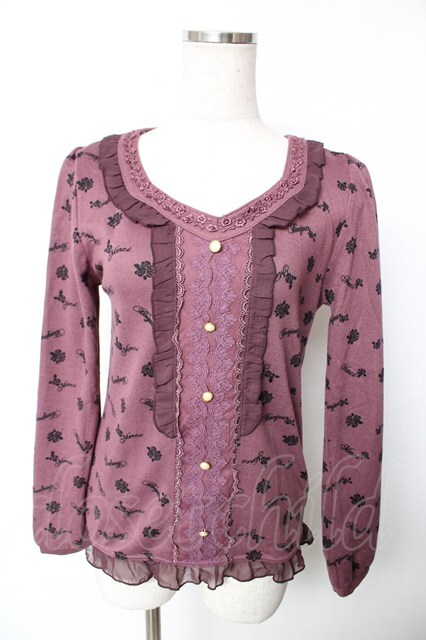 axes femme / ローズ柄ニットカットソー ピンク Y-25-12-17-062-AX-TO-SZ-ZY