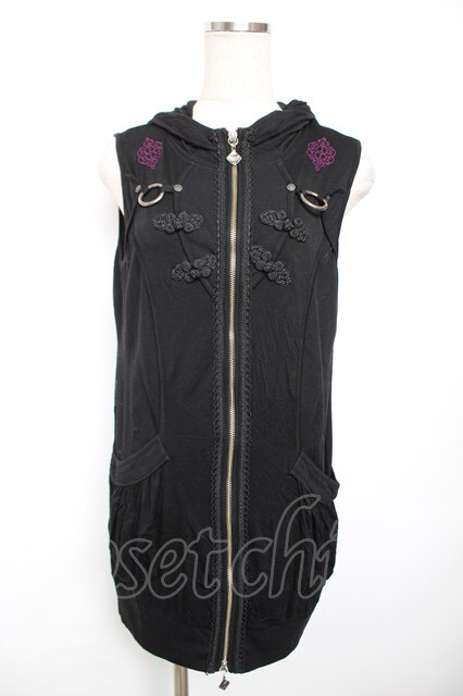 Ozz oneste / チャイナ風ノースリーブパーカー 黒 Y-25-12-17-079-OO-TO-SZ-ZY
