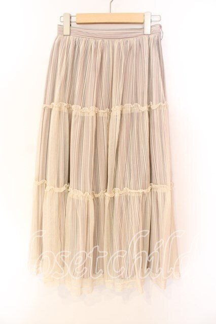 axes femme / ストライプチュールスカート ベージュ×アイボリー O-25-12-15-009-AX-SK-IG-OS