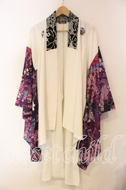 Qutie Frash / 和柄切替羽織 ホワイト×パープル O-25-12-15-085-QU-TO-OW-OS