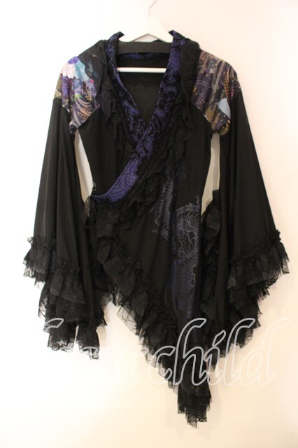 Qutie Frash / メッシュショルダーアシメ着物カーディガン ブラック×ブルー O-25-12-15-079-QU-JA-OW-OS [戻る]