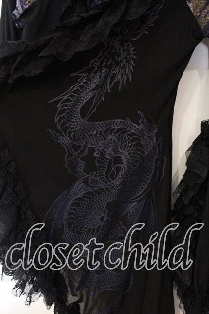 Qutie Frash / メッシュショルダーアシメ着物カーディガン ブラック×ブルー O-25-12-15-079-QU-JA-OW-OS