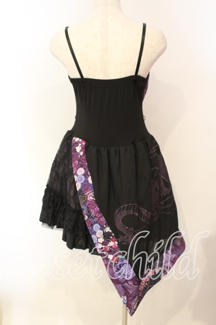 Qutie Frash / 龍プリントアシンメトリーキャミワンピース ブラック×パープル O-25-12-15-056-QU-OP-OW-OS