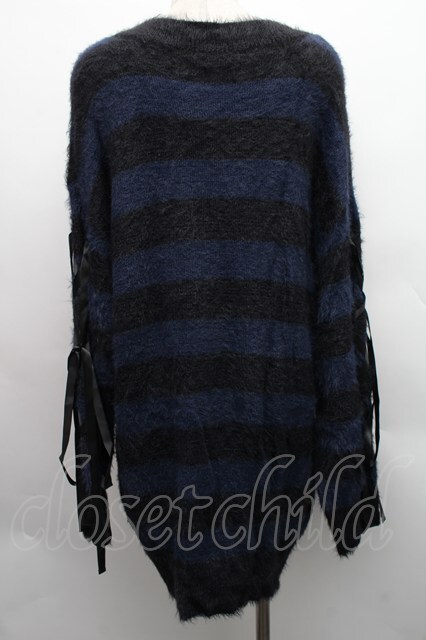 NOEMIE / おしゃれ囚人袖レースアップフェザーニット 紺x黒 S-25-12-15-015-LO-TO-AS-ZS