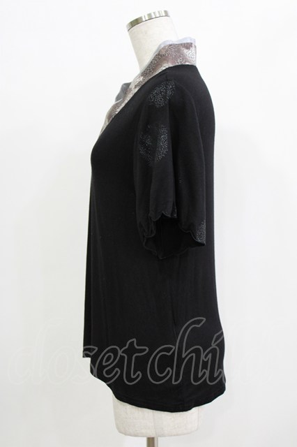 gouk / 着物衿半袖カットソー 黒 H-25-12-22-047-GO-TO-KB-ZH