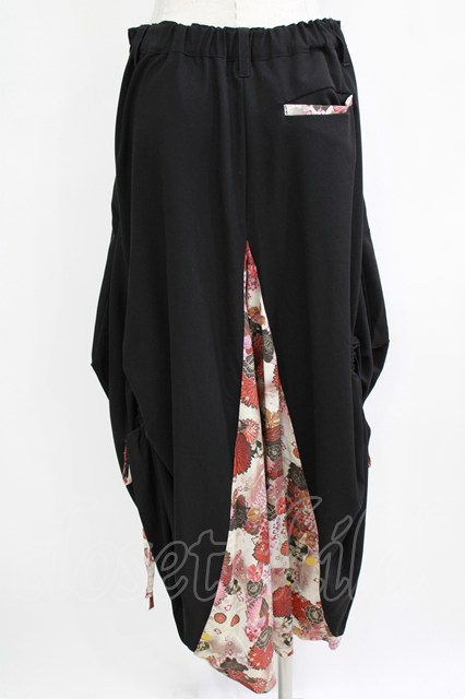 gouk / 和柄切替ギャザーパンツ 黒 H-25-12-22-024-GO-PA-KB-ZH