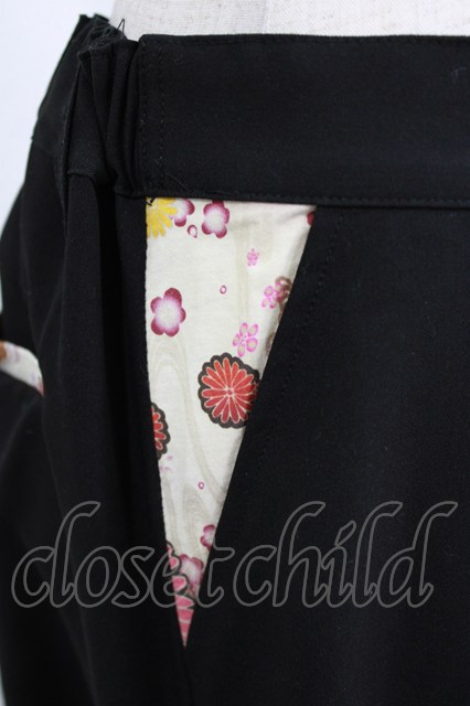 gouk / 和柄切替ギャザーパンツ 黒 H-25-12-22-024-GO-PA-KB-ZH [戻る]
