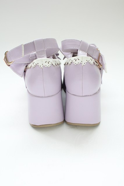 axes femme kawaii / リボンスカラップ配色シューズ L パープルX白 T-25-12-19-049-AX-SH-SA-ZT