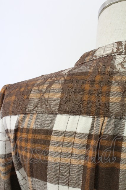 axes femme / ハイネックチェック長袖ワンピース ブラウン T-25-12-18-025-AX-OP-SA-ZT