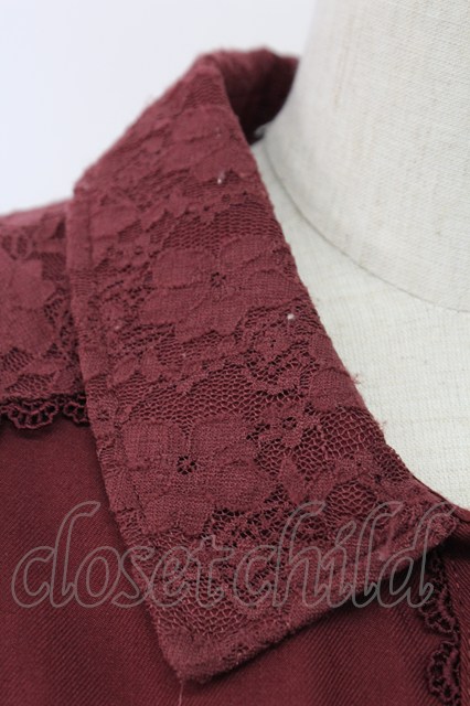 axes femme / チュール切り替えシャツワンピース ボルドーX生成り T-25-12-18-026-AX-OP-SA-ZT [戻る]