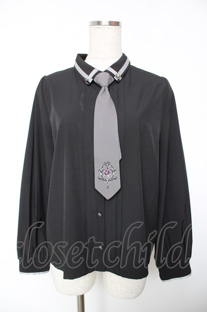 axes femme / エンブレム刺繍ネクタイ付ブラウス M 黒 Y-25-12-19-023-AX-BL-SZ-ZY