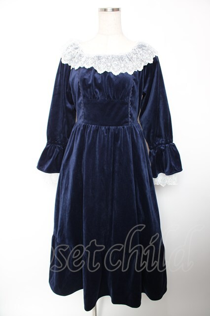 axes femme / パゴタ袖ベロアワンピース F 紺 Y-25-12-19-075-AX-OP-SZ-ZY