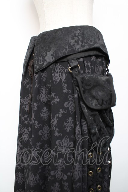 STEAM / カーマーベルト付きオーナメント柄ロングスカート 黒 Y-25-12-19-110-HN-SK-SZ-ZY