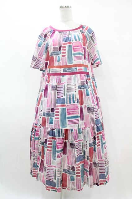 Jane Marple Dans Le Salon / Constructed stripes surf dress M ピンク H-25-12-15-1010-JM-OP-KB-ZH