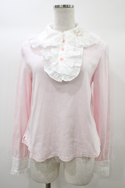 Angelic Pretty / 襟ロゴ刺繍ジャボ付カットソー Free ピンク H-25-12-24-044-AP-TO-NS-ZH