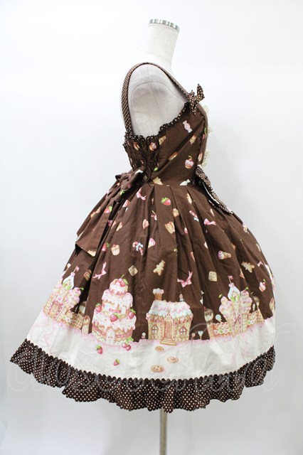 Angelic Pretty / お菓子の国シャーリングジャンパースカート Free ブラウン H-25-12-24-022-AP-OP-NS-ZH